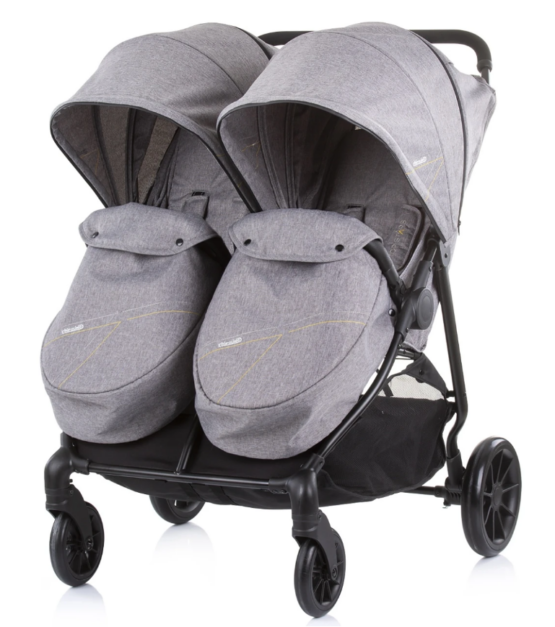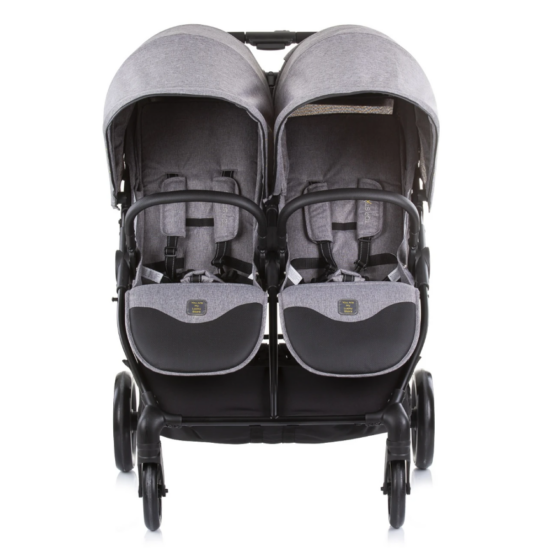 Căruciorul este potrivit pentru nou-născuți și copii cu greutatea de până la 15 kg. fiecare. Cadru clasic robust. Pliere usoara si compacta cu o singura mana. Spătarul fiecărui scaun este reglabil. Spătare cu mai multe poziții pentru fiecare scaun. Două huse detașabile separate pentru bara față, cu tapițerie din piele ecologică. Centuri de siguranta in 5 puncte cu umeri captusite pentru fiecare scaun. Două hote mari reglabile cu o secțiune suplimentară, suporturi pentru picioare reglabile. Mâner confortabil acoperit cu material de înaltă calitate. Două coșuri de depozitare separate. Toate roțile se desprind repede. Toate rotile cu suspensie. Roțile din spate cu pârghie de frână. Două huse pentru picioare moi. Geanta Mama pentru accesorii – buzunare convenabile si saltea de infasat. Caruciorul este fabricat in conformitate cu standardul european EN1888-1.