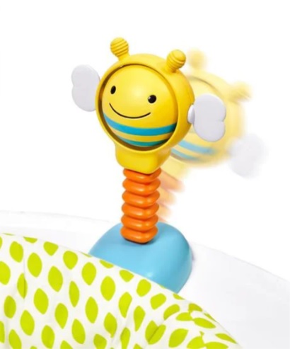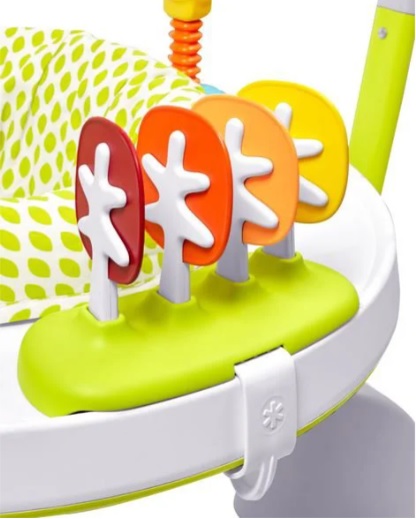 Dispune de un scaun rotativ care se misca la 360 de grade, astfel incat bebelusul sa se roteasca si saexploreze totul in jurul lui. Jucariile jumperului incurajeaza dezvoltarea abilitatilor senzoriale, gratie texturilor si a formelor diferite. Bebelusii vor invata despre relatia cauza-efect si isi for exersa, de asemenea, abilitatile motorii de baza – gratie sariturilor continue.