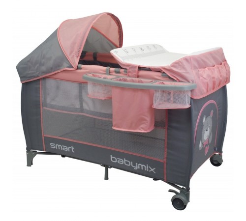 Datorită designului pliabil, tarc poate fi luat cu ușurință cu dvs. în calatorii sau utilizat acasă – ca un pătuț sau zonă de joc. Rotile cu sistem de blocare facilitează mișcarea. Locul de somn este foarte spațios, setul are deja o saltea largă și confortabilă, poziția de jos este reglată la 2 niveluri. La capătul arenei se află o gaură fixată cu un fermoar, prin care copilul poate ieși din arenă și se poate urca în ea.