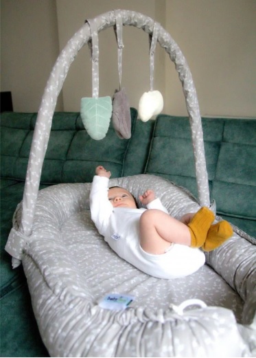 * Astfel, micutul poate fi asezat oriunde, de la patut, la carucior si chiar pe podea sau in tarcul de joaca.
