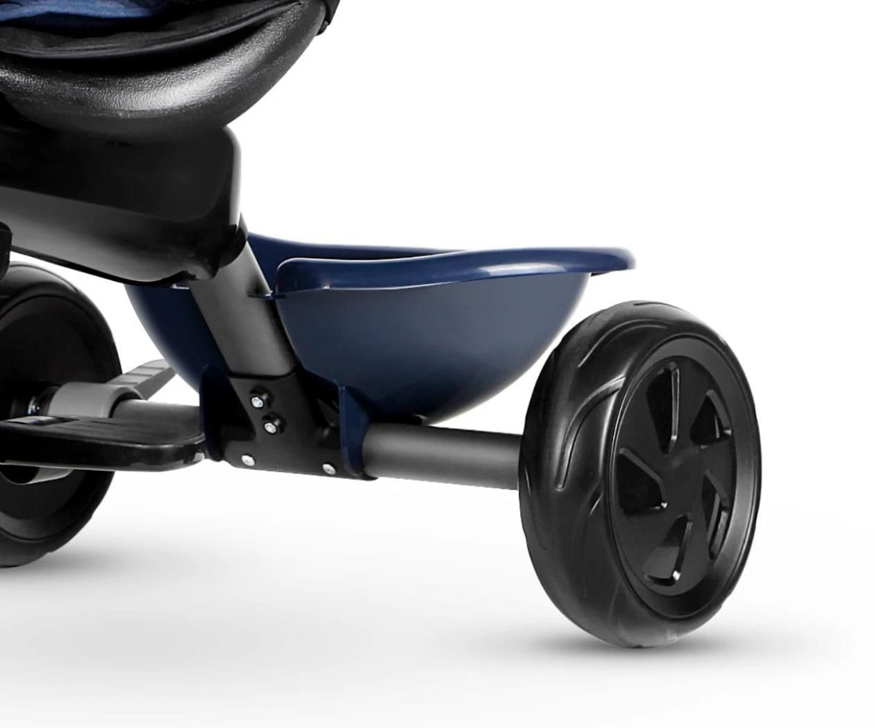 Se potrivește în cele mai multe masini. Ham de siguranță în 5 puncte și pernă de scaun respirabilă. Surround de siguranță detașabil. Spătar detașabil, suport pentru picioare mijloc pliabil și pedale antiderapant. Sistem de roți libere față cu roți EVA. Baldachin extensibil de protecție UV. Mâner părinte reglabil. Coșul suportului sticlei față și coșul de depozitare din spate.