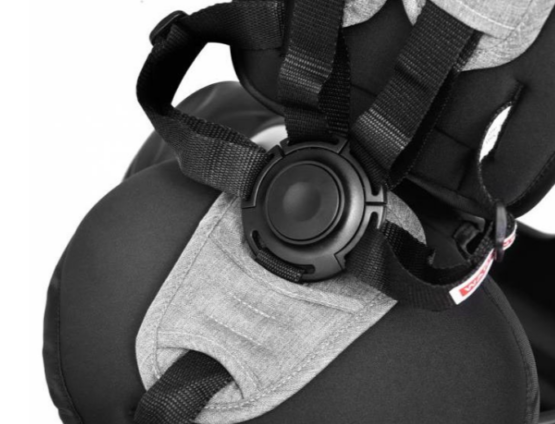 Соединенный колясочный ножной тормоз на заднем колесе. Родительская ручка-толкатель с возможностью контроля направления движения. Открывающийся защитный бампер. 5-ти точечный ремень безопасности. Держатель для стакана/бутылки на руле. Задняя корзинка для игрушек.