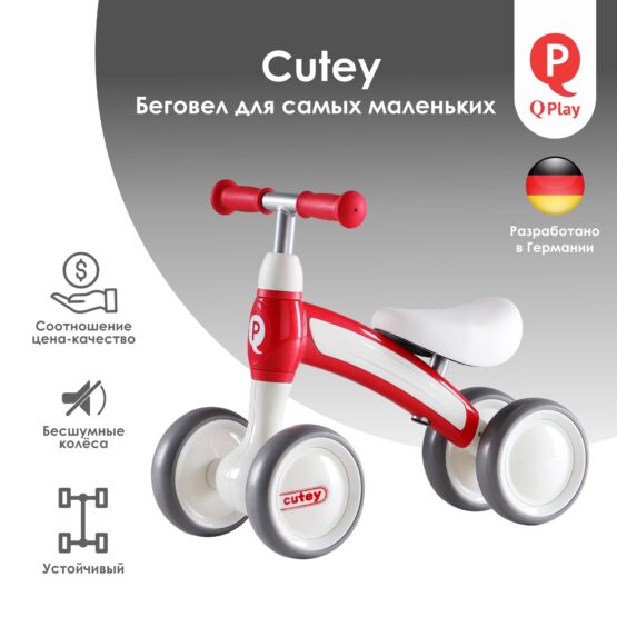 Беговел QPlay CUTEY предназначен для деток с 10 мес. до 3-х лет. Максимальный вес ребёнка – 20 кг.
