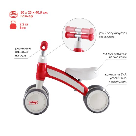 Детский беговел CUTEY от QPlay впечатляет великолепным дизайном, высоким качеством изготовления и множеством продуманных деталей.
