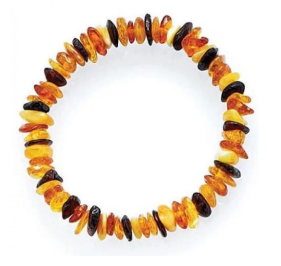 - De secole în tarile baltice se spune ca bebelusii care poarta un colier sunt mai calmi decît altii si ca îi ajuta sa doarma. Purtat pe piele chihlimbarul elibereaza acidul succinic care intra prin piele in circuitul sanguin la fel ca orice produs cosmetic pus pe pielea bebelusului si are efect analgezic si calmant.