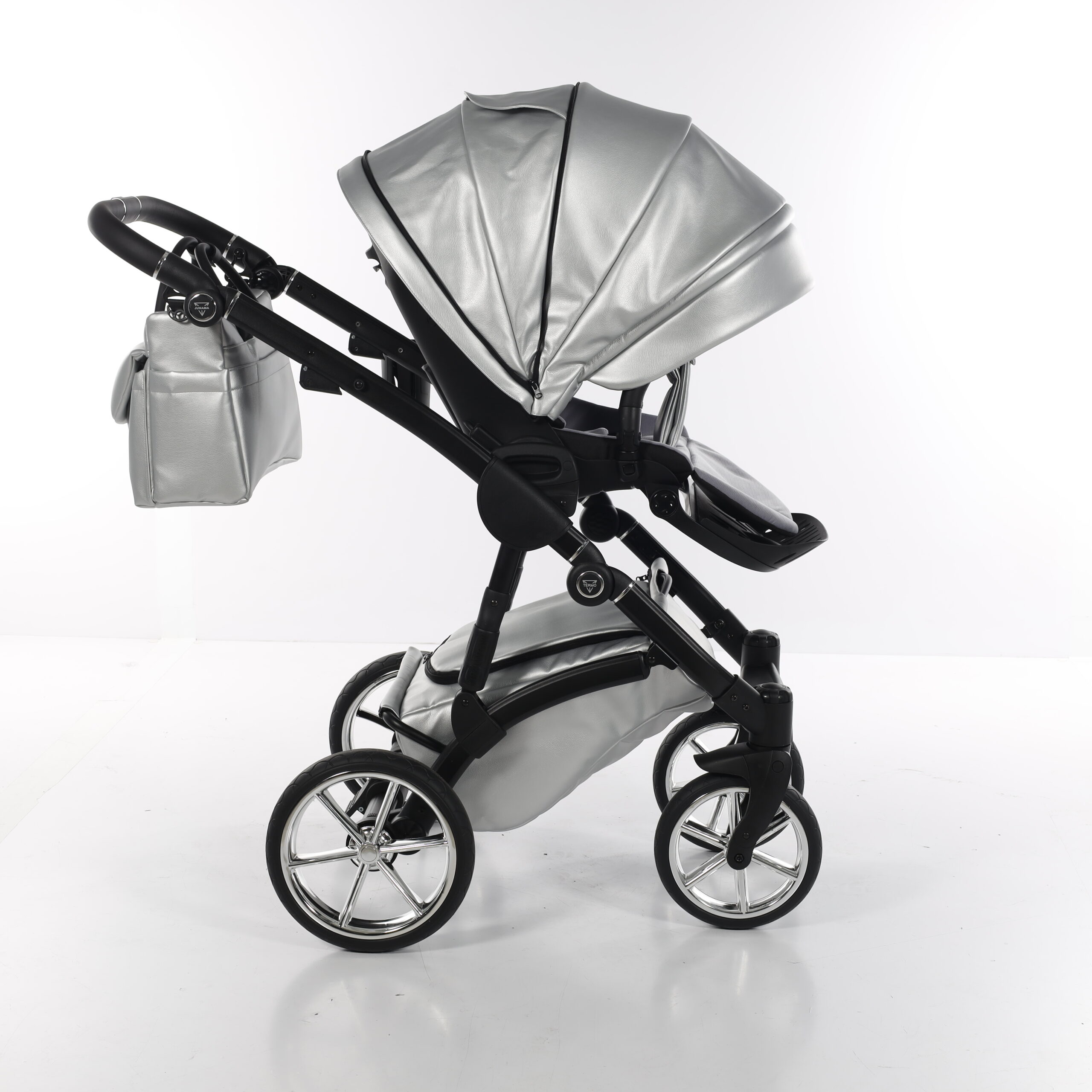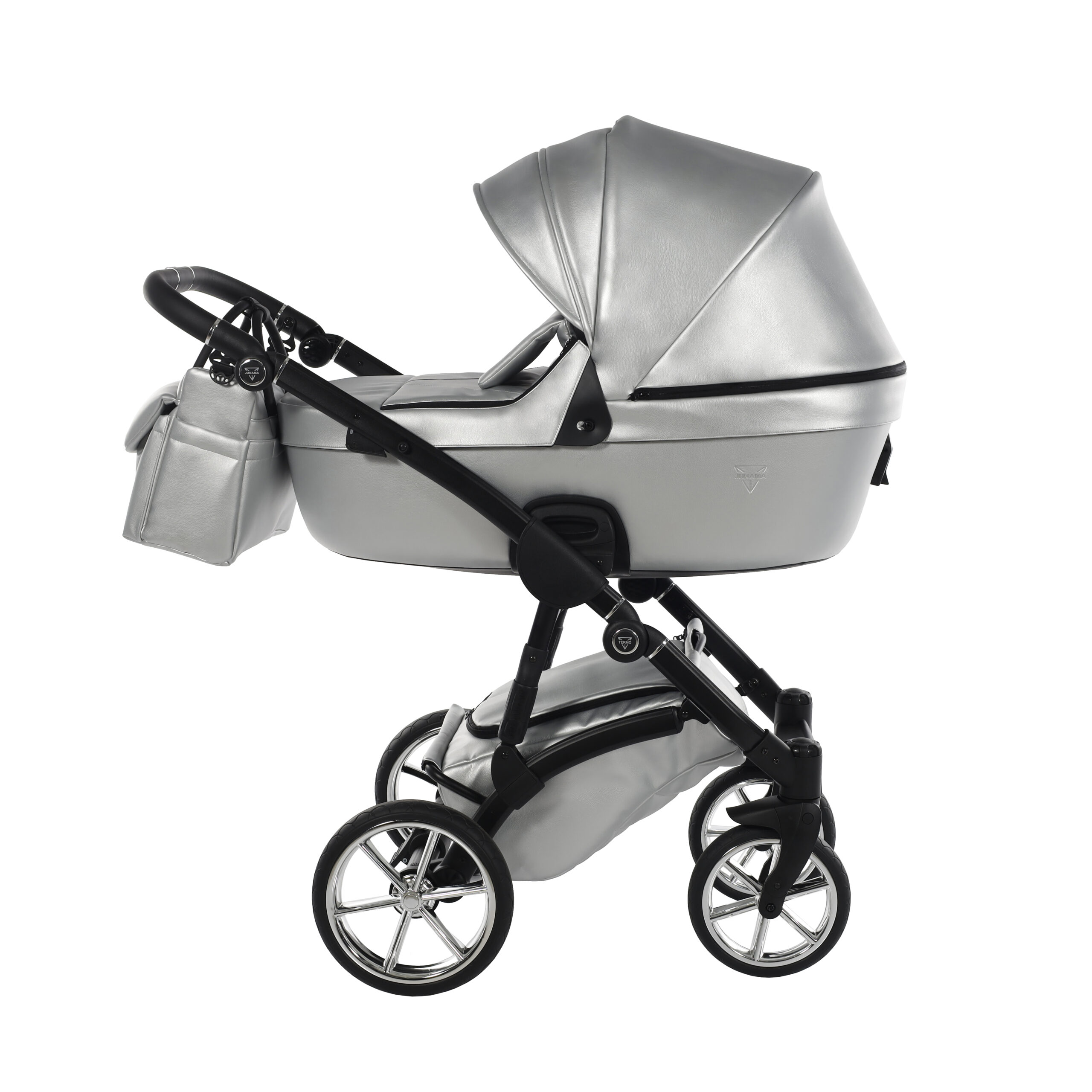Люлька Junama Termo Eco (Джунама Термо Эко) не имеет острых углов, за счет чего смотрится компактно. Она глубокая, вместительная. В ней можно перевозить ребенка возрастом до одного года и весом до 9 килограммов. Дно в люльке жесткое, поэтому позвоночнику маленького ребенка ничего не угрожает. Она может использоваться и в качестве мобильной колыбели благодаря специальным опорам на дне. Снаружи люлька обита прочной эко-кожей серебристого цвета, которая не выгорает на солнце, отталкивает влагу и грязь, надолго сохраняя привлекательный внешний вид. Внутренняя сторона отделана гипоаллергенным материалом, который не вызывает аллергических реакций. Капюшон в люльке большой, многопозиционный, регулируется бесшумно. В комплектацию люльки входит мягкий матрас и чехол, который защитит малыша от ветра, снега и дождя. Установка люльки на шасси осуществляется в считанные секунды. Для удобства переноски производитель предусмотрел практичные ремни.