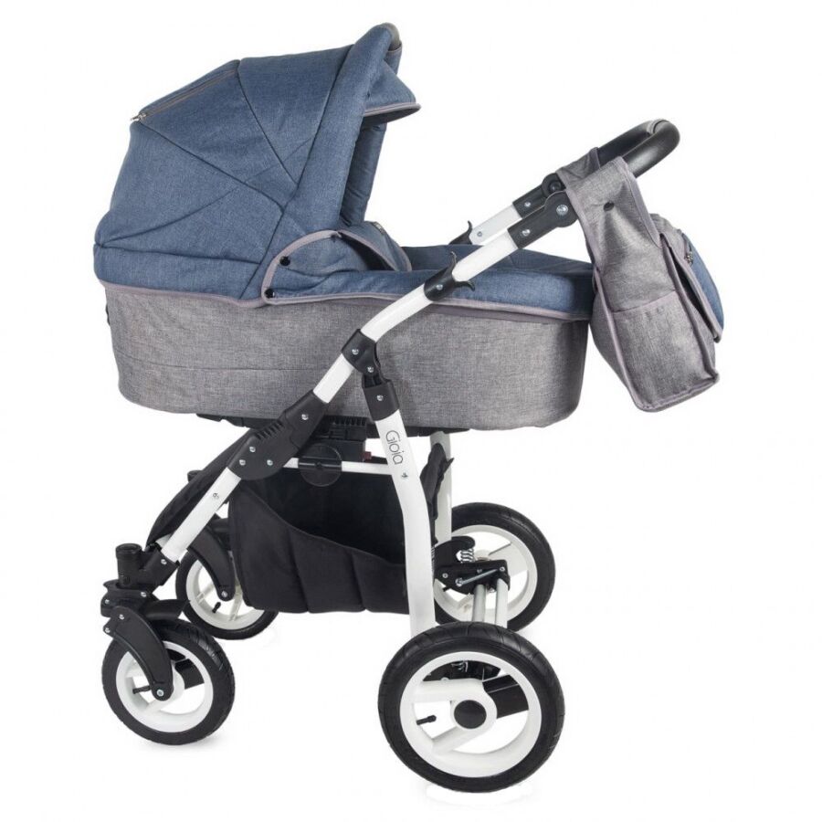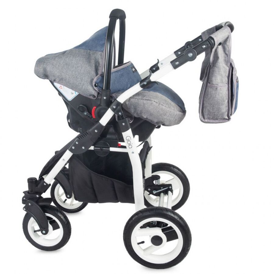 Caruciorul GIOIA este destinat copiilor cu varsta cuprinsa intre 0-36 luni cu o greutate de pana la 15 kg si o inaltime maxima de 110 cm. Cadrul GIOIA are in dotare roti din cauciuc gonflabil, iar cele de pe fata sunt pivotante. Cadrul dispune de un sistem de suspensii foarte elastic, iar frana este de tip sistem „cablu”, fiind montata pe rotile din spate. Un accesoriu util este si geanta incapatoare, prevazuta cu accesorii de prindere pe cadru.