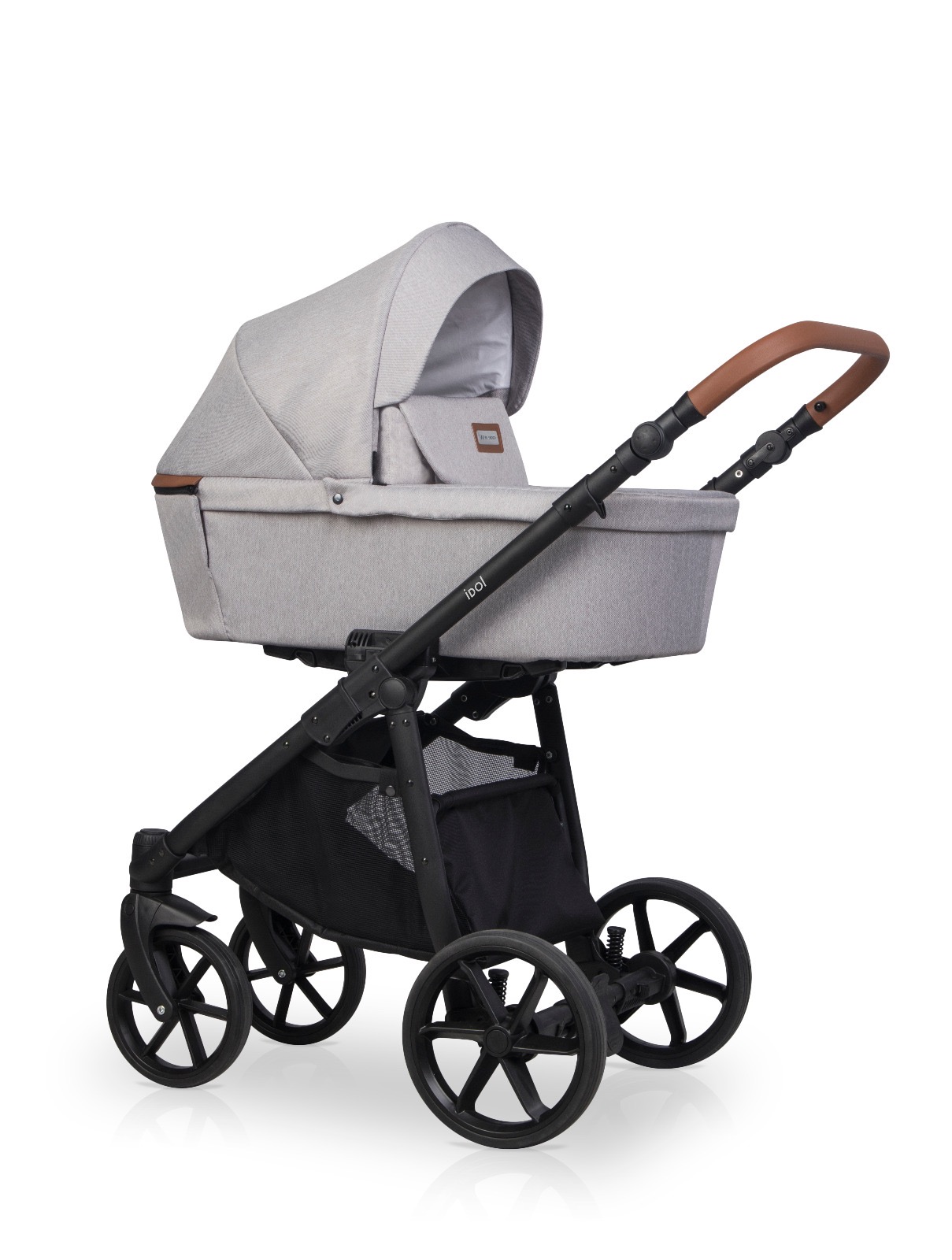 Împreună cu căruciorul este inclusă o geantă practică cu un sistem de prindere pentru mânerul căruciorului și o husă călduroasă pentru picioarele bebelușului, care va fi cu siguranță utilă în zilele reci. Sub cărucior se află un coș spațios și durabil, în care puteți introduce cu ușurință toate obiectele mici de care aveți nevoie în timpul unei plimbări sau pentru cumpărăturile zilnice.