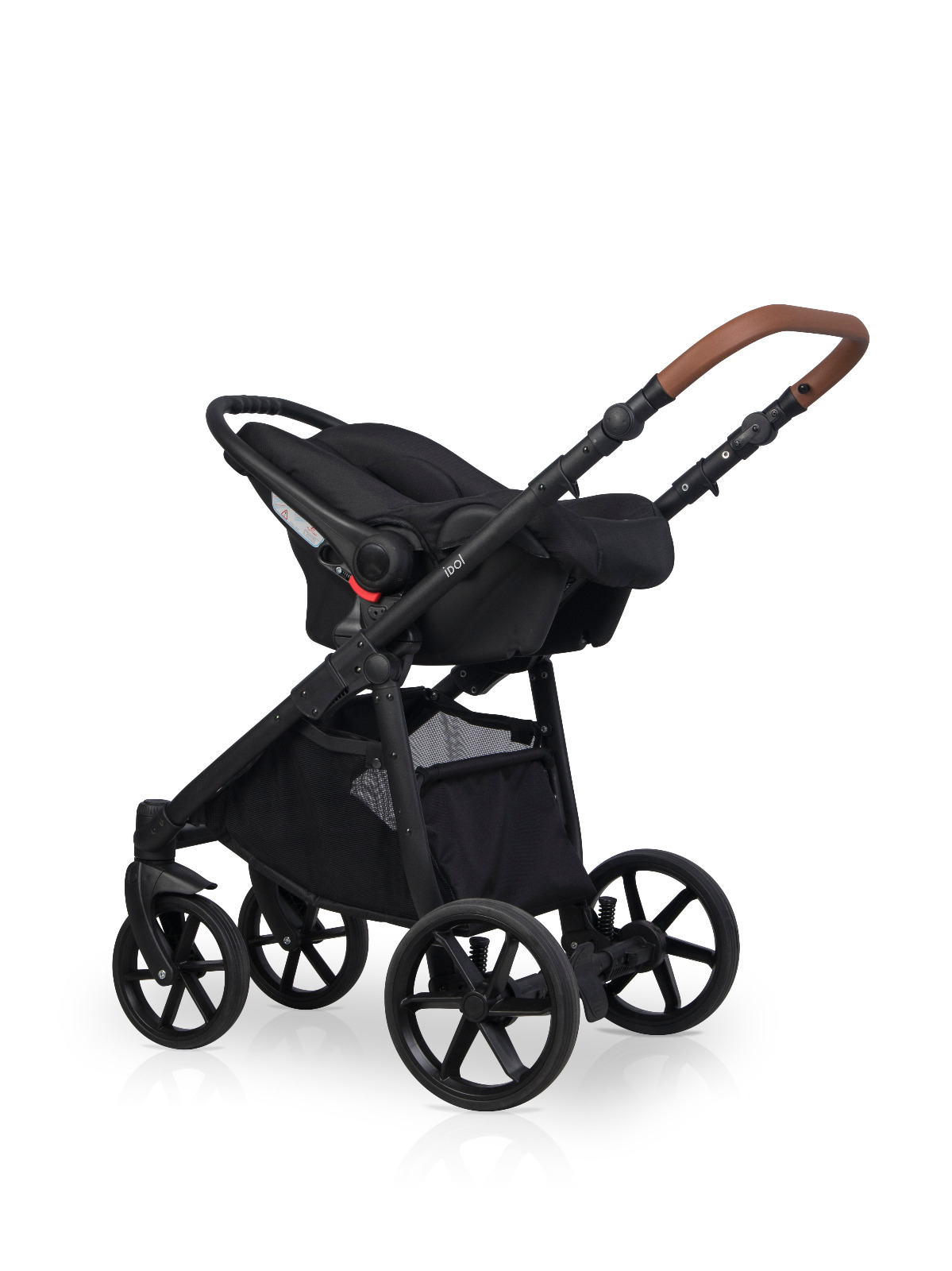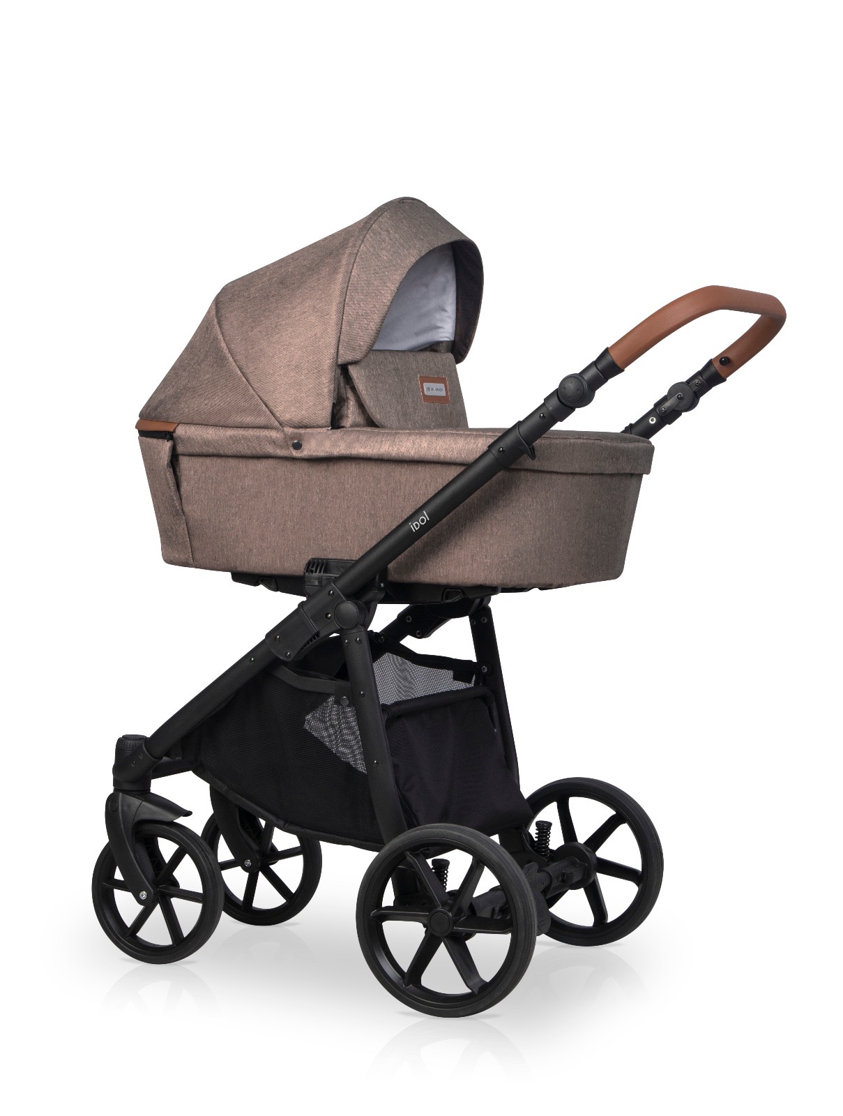 Împreună cu căruciorul este inclusă o geantă practică cu un sistem de prindere pentru mânerul căruciorului și o husă călduroasă pentru picioarele bebelușului, care va fi cu siguranță utilă în zilele reci. Sub cărucior se află un coș spațios și durabil, în care puteți introduce cu ușurință toate obiectele mici de care aveți nevoie în timpul unei plimbări sau pentru cumpărăturile zilnice.