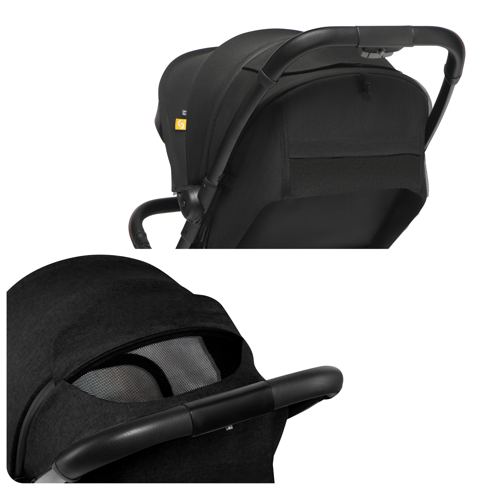 Gluga extinsă din material impermeabil protejează copilul de vânt și ploaie, fiind în același timp ușor de curățat. Pe vreme caldă, oferă umbră și protecție împotriva radiațiilor solare.