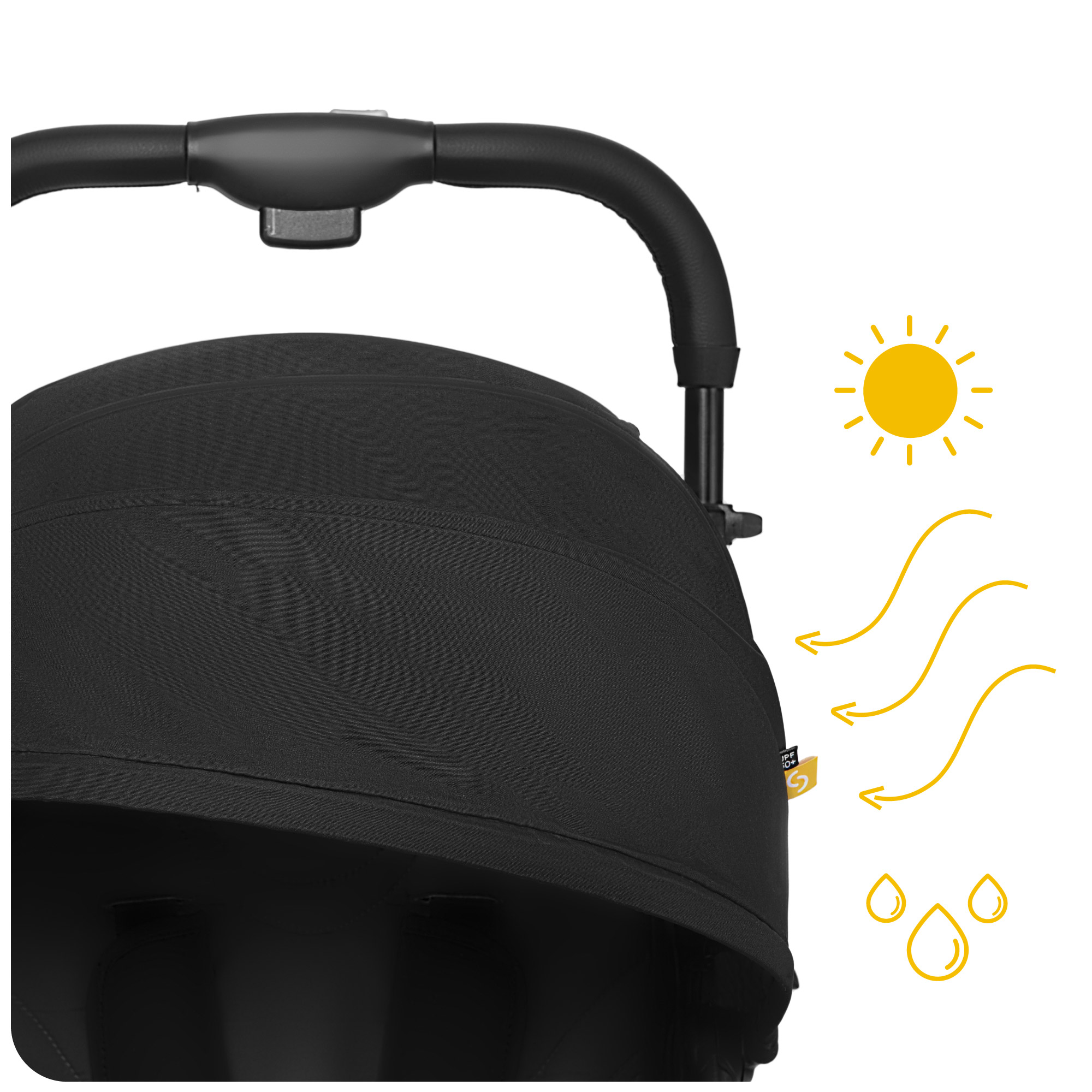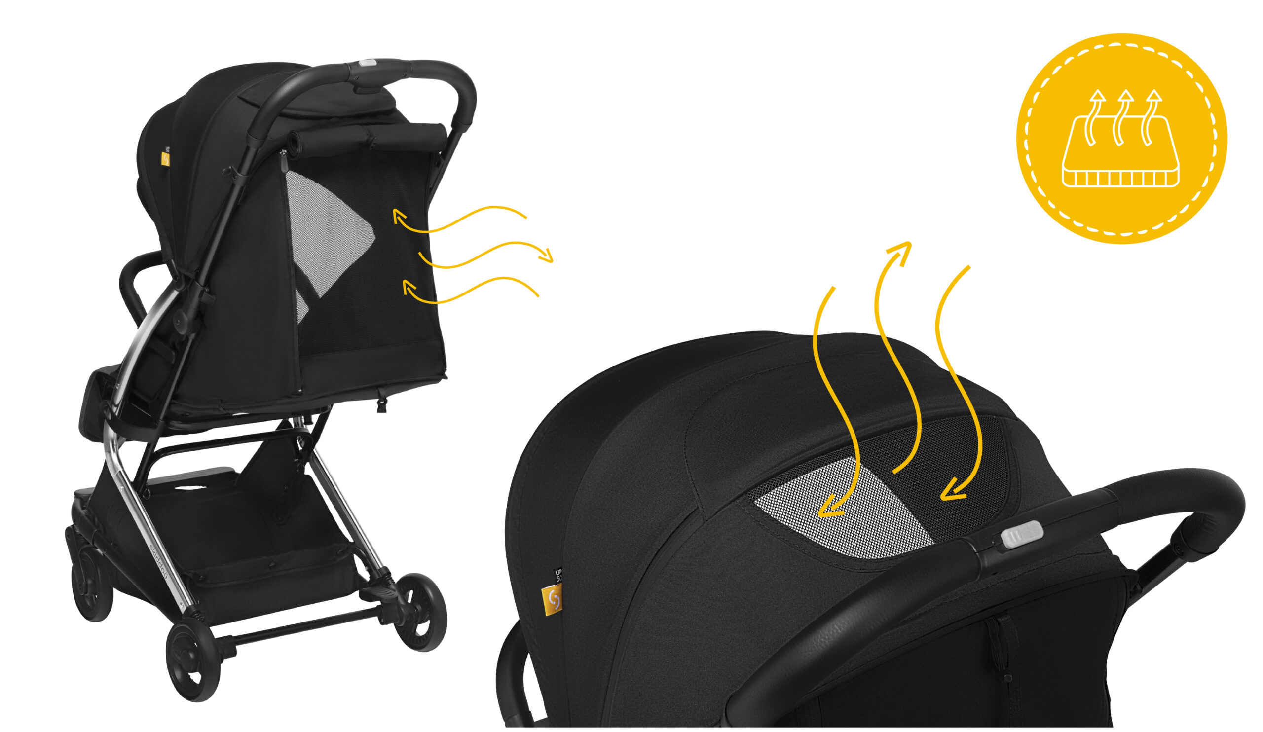 Легкая и маленькая коляска идеально подходит для поездок на отдых. Ткань со степенью защиты UPF 50+ и выдвижной капюшон, который можно наклонить, чтобы защитить вашего ребенка от вредного воздействия солнца.