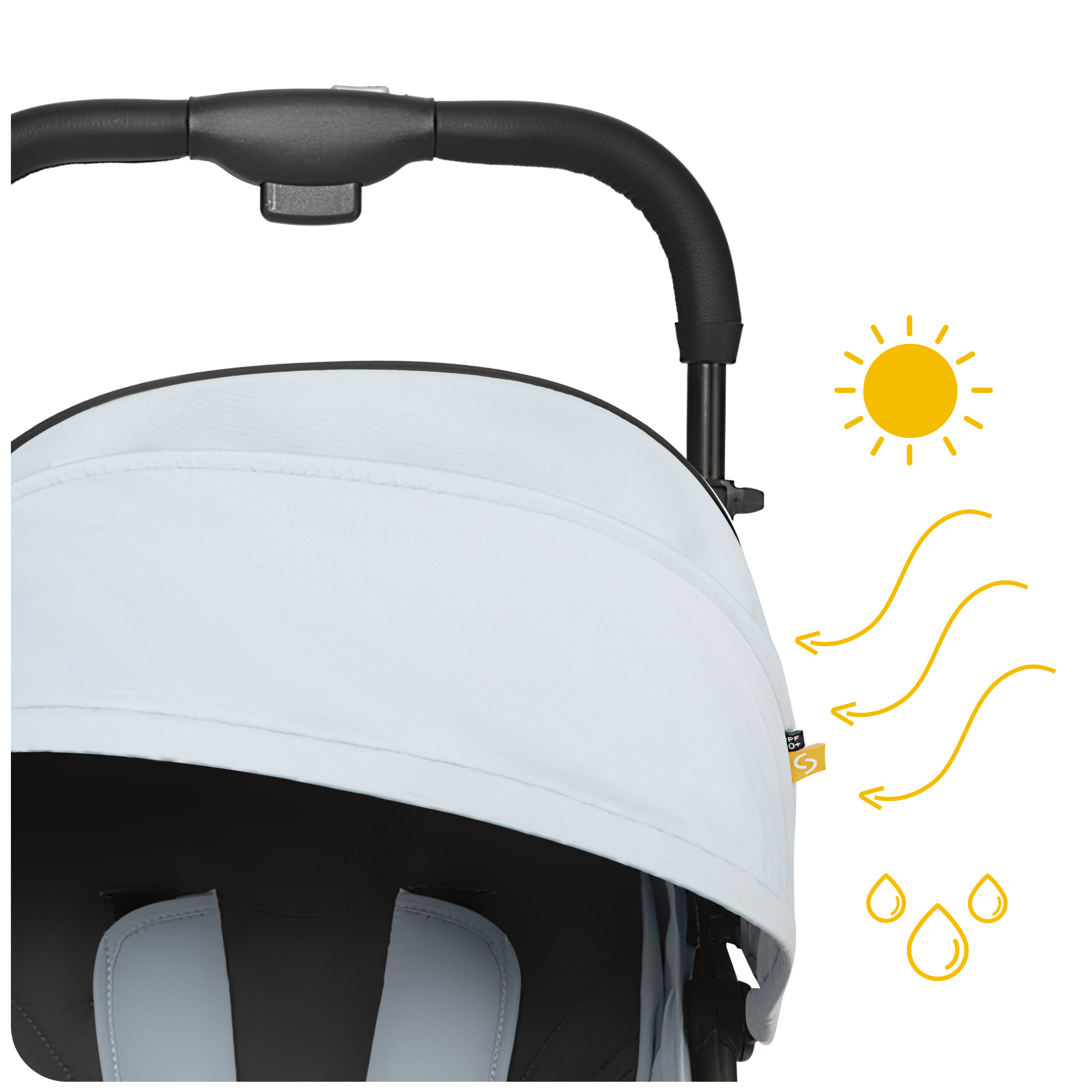 Caruciorul este ușor si mic, ideal pentru calatorii de agrement. Țesătura UPF 50+ și gluga retractabilă poate fi înclinată pentru a-ți proteja copilul de efectele nocive ale soarelui.