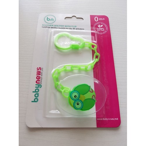 Lanțul este echipat cu o cataramă practică, care oferă fixarea sigură pe hainele copiilor. Clipsa se fixează ferm pe îmbrăcămintea copilului și protejează suzeta de cădere și poluare. Marginile rotunjite nu vor răni copilul. Au formă de animale diferite, care, fără îndoială, va place la copil. Este un accesoriu frumos și necesar pentru copilul dvs.