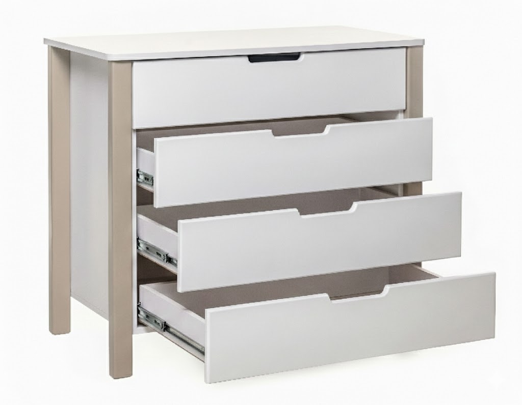 Comoda Karol90 este soluția perfectă la problema confortului și utilității. Toate lucrurile care trebuie păstrate într-un singur loc vor încăpea în 4 sertare spațioase. Este compactă, dar încăpătoare.