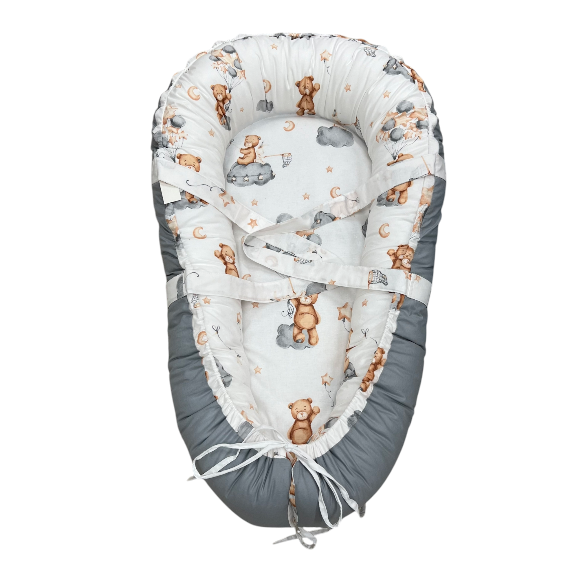 - Prezența Mânerelor: Mânerele din pânză de calitate sunt perfect adaptate pentru a facilita transportul cuibușorului, astfel încât să poți muta ușor locul de odihnă al bebelușului dintr-o cameră în alta sau chiar în aer liber, atunci când este necesar.