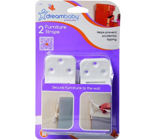 Curele pentru fixarea mobilierului pe perete Dreambaby previn rănirile potențial grave cauzate de mobilierul greu, cum ar fi bibliotecile, sertarele, dulapuri, vitrinele etc., care cad pe un copil.