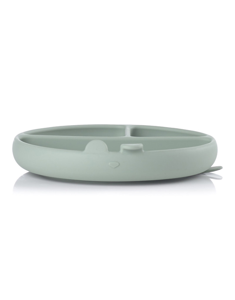Design cu forme simple de animale, perfect pentru înțărcarea condusă de bebeluși (BLW). Poți folosi urechinele de pe farfurie ca suport de linguriță.
