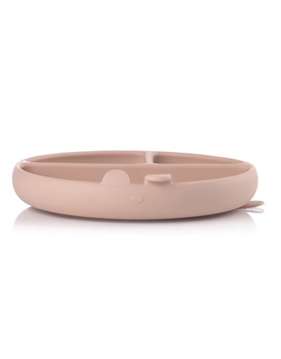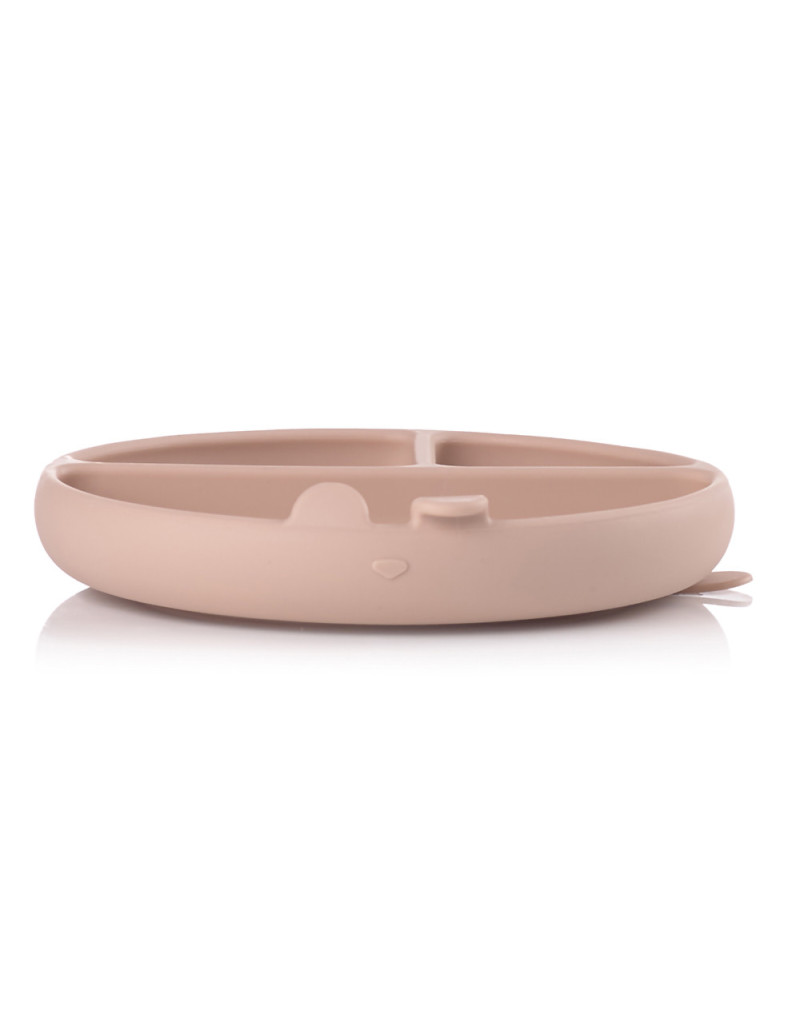 Design cu forme simple de animale, perfect pentru înțărcarea condusă de bebeluși (BLW). Poți folosi urechinele de pe farfurie ca suport de linguriță.