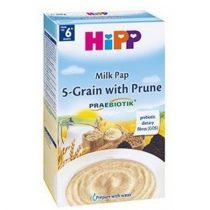 Compoziție: 45%, urmat de o formulă pentru sugari (obezzhirennoemoloko uscată, uleiuri vegetale (de floarea soarelui, ulei de rapiță nizkoerukovoe, ulei de nucă de cocos), pudră chastichnodemineralizovannaya zer uscat, maltodextrină, vitamina C, sulfat de fier, sulfat de zinc, vitamina E, niacină, acid pantotenic, vitamina B1, vitamina A, vitamina B6, vitamina B2, iodat de potasiu, acid folic, sulfatmedi, vitamina K, selenat de sodiu, vitamina D, biotină), făină de grâu din grâu dur, praf de zer, dextroză, făină de grâu, ovăz făină de grâu integral , fibre prebiotice (galaktooli gosaharidy-lactoză), 3% prune uscate pulverizate, făină de orez, făină de porumb, amidon de porumb, carbonat de calciu, vitamina B1, vitamina A, vitamina D.