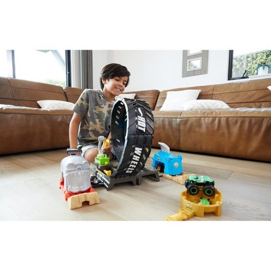 Crează accidente incredibile cu acest camion mare Hot Wheels! Camionul poate transporta 2 mașini Hot Wheels la scara 1:64. În caz de accident, acesta se prăbușește și lansează mașini din corp într-un zbor nebun. Trageți de cabina șoferului, reparați camionul și lansați-vă în noi aventuri pentru coliziuni și mai nebunești.