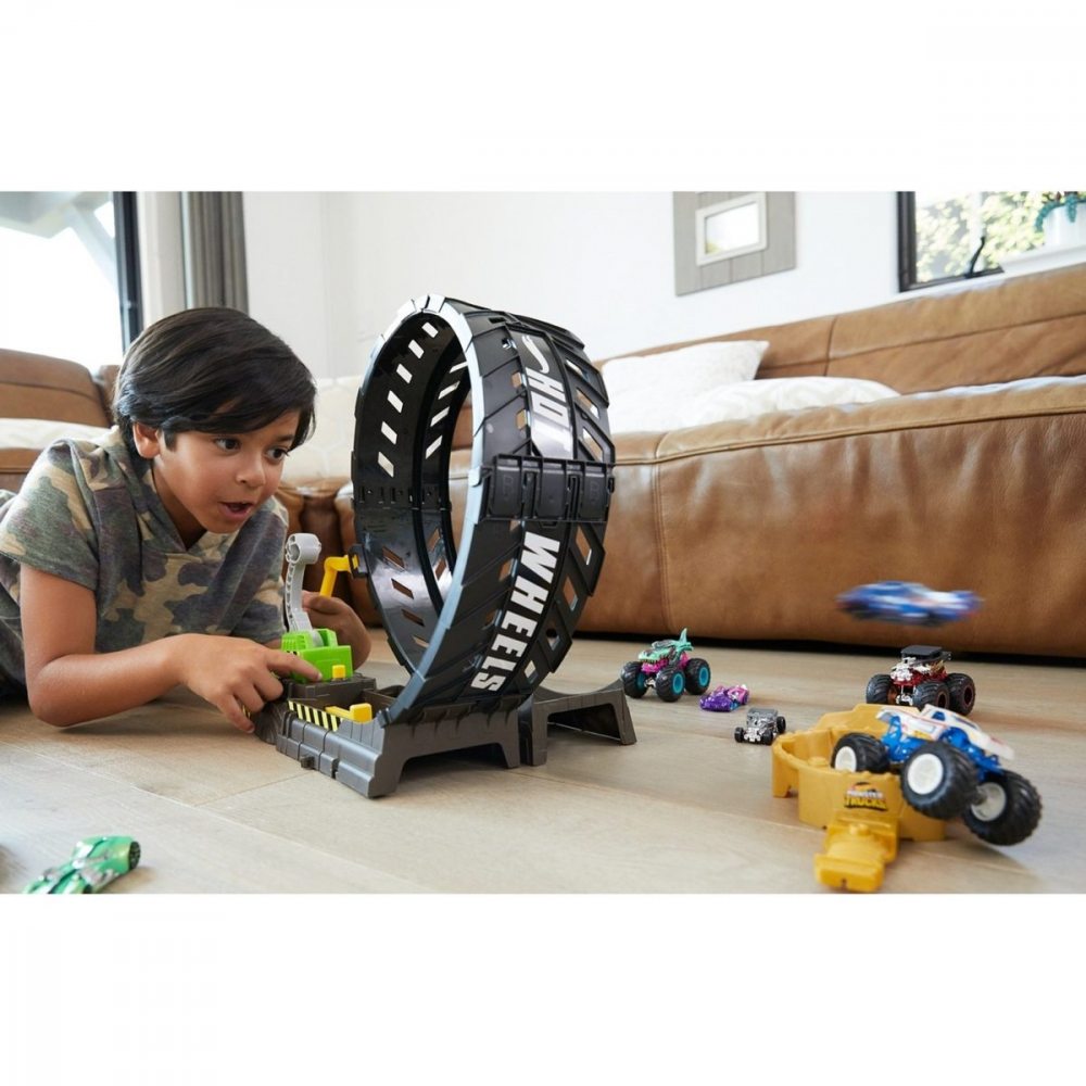 Crează accidente incredibile cu acest camion mare Hot Wheels! Camionul poate transporta 2 mașini Hot Wheels la scara 1:64. În caz de accident, acesta se prăbușește și lansează mașini din corp într-un zbor nebun. Trageți de cabina șoferului, reparați camionul și lansați-vă în noi aventuri pentru coliziuni și mai nebunești.