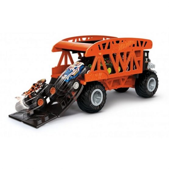 Acesta este un camion mare pentru aventurile incredibile ale vehiculelor off-road „Monster Trucks”! Pe două niveluri ale acestui transportor uriaș, puteți încărca până la 12 camioane monstru, la scara 1:64. Există, de asemenea, o rampă în partea din spate a camionului care înclină în jos pentru a crea o coborâre confortabilă pentru SUV-uri. Vehiculele off-road din seria „Monster Trucks” nu sunt incluse în set. Culorile și aspectul produsului pot varia de la cele prezentate.