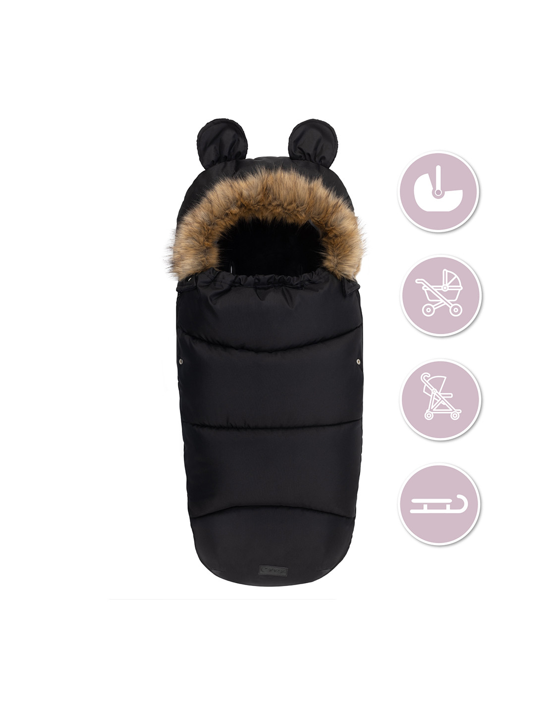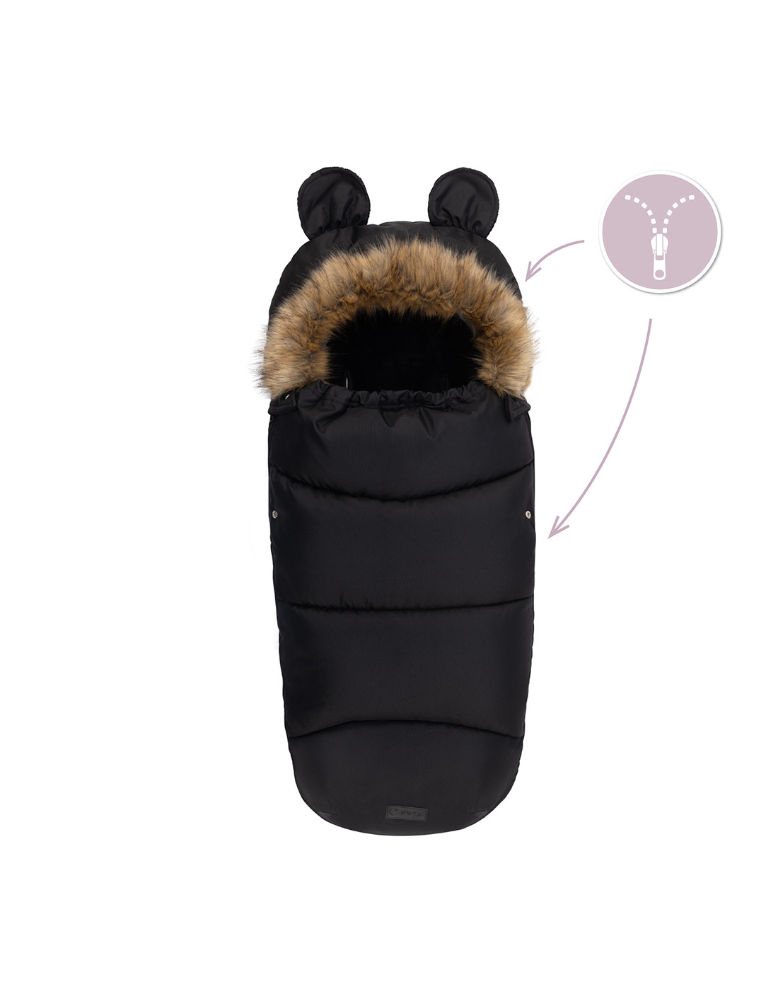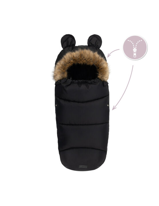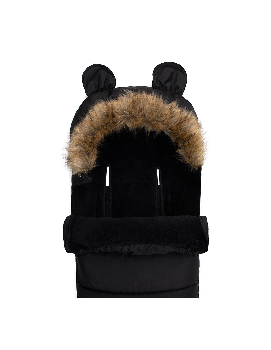 Muff MoMi are o glugă caldă, cu urechi distractive căptușite cu blană artificială detașabilă. Fantele pentru curele sunt potrivite pentru curele cu 3 și 5 puncte.