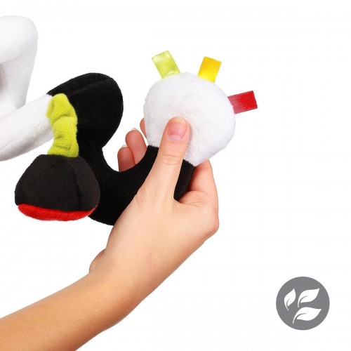 este o jucărie ideală într-un cărucior, o pătuț sau un fotoliu. Când se întinde, în plus față de o vibrație vizibilă, copilul dvs. va auzi un clopot.