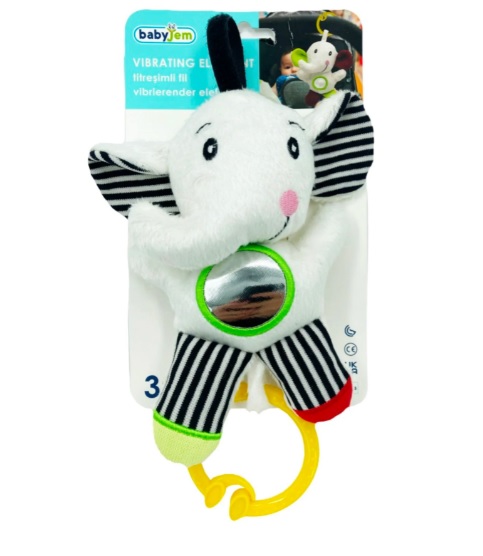 Jucarie din plus cu vibratii pentru bebelusi Elefant de la BabyJem va deveni prietena oricarui bebelus. Moale si placuta la atingere, cu sunete atractive si cu vibratii va va insoti pretutindeni.