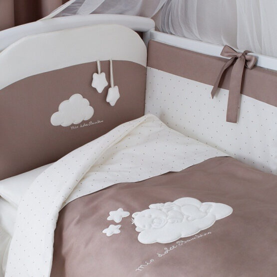 Designul modelului ”Bambino” din satin egiptean de înaltă calitate, cu efect de mătase, va înconjura copilul D-stră cu căldura și comfortul familiei. Nuanțele naturale și tonurile calme de elită a satinului îi va crea copilului o atmosferă calmă și plăcută pentru a se odihni și a se juca, iar jucăriile de pluș elegante și absolut naturale din velur vor ocupa micul descoperitor după ce se va trezi. Țesătura strălucitoare și moale, oferă o plăcere deosebită la fiecare atingere.