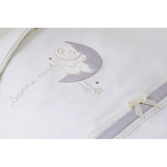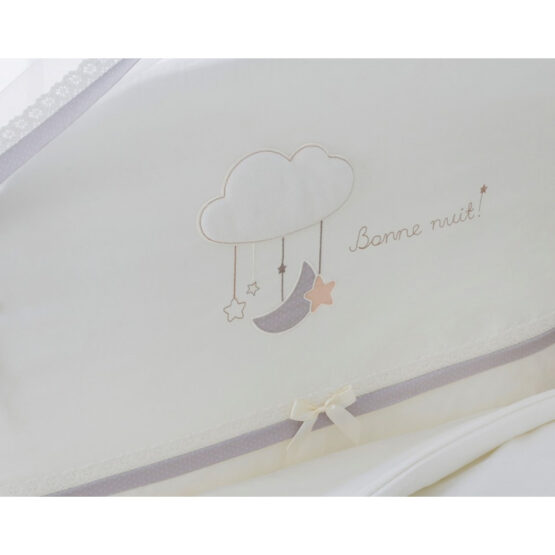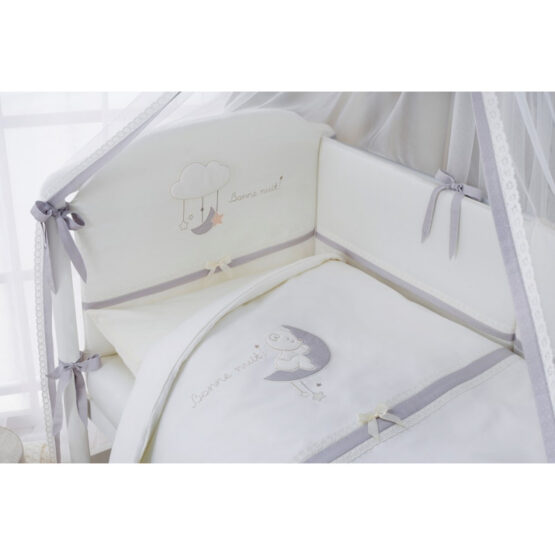 Каждая деталь модели »Bonne Nuit» создана, чтобы подарить вашему малышу приятные сны, окружить его заботой и теплом домашнего уюта. Любое прикосновение к нежному сатину обеспечит приятные ощущения, а натуральные велюровые аппликации вызовут настоящий восторг и станут увлекательным открытием после пробуждения.