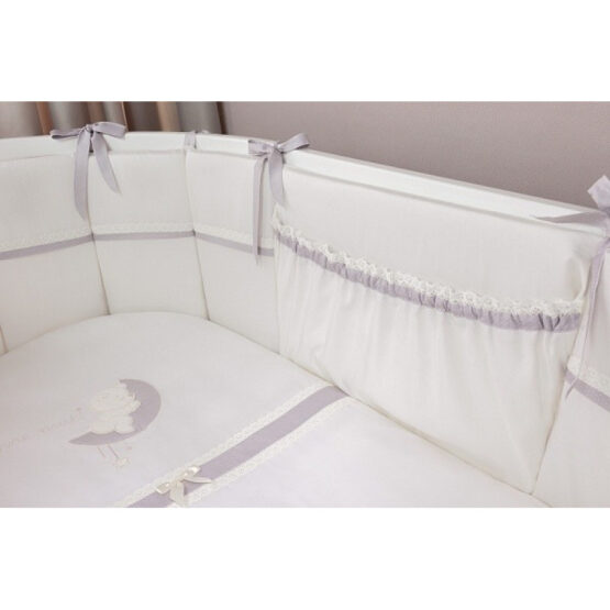 Комплект продуман до мелочей: специальная форма подушки и одеяло с закругленными углами создают цельную композицию. Составной бампер допускает различные варианты сочетания и подойдет как для круглой, так и для овальной кровати, а функциональность дополнительного кармана уже оценили многие родители.