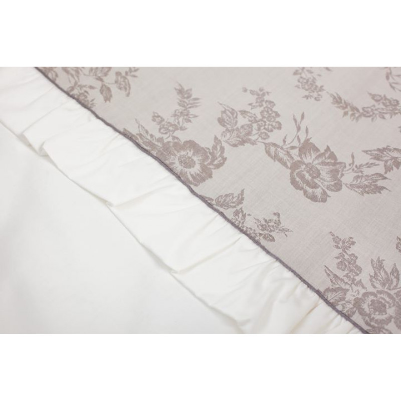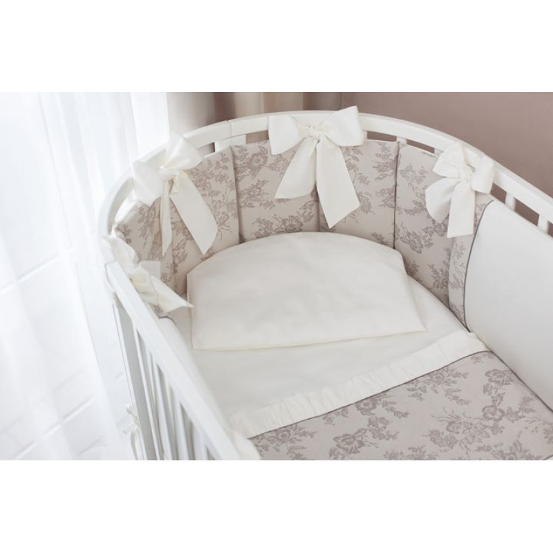 Două cearșafuri de dimensiuni diferite și un perete de protecție care se pot folosi și pentru pat de tip transformer. Special conceput pentru pătuțuri rotunde și ovale. Perna și plapuma sunt rotungite.