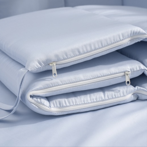 Special pentru acest set, am dezvoltat laterale cu huse detașabile cu fermoar în două părți: prima este formată din 6 tampoane, a doua – din 12. Combinația de satin de bumbac natural și material de umplutură Holcon hipoalergenic aerisit oferă o altă proprietate utilă: tampoanele permit aerului să treacă bine și mențin echilibrul temperaturii.