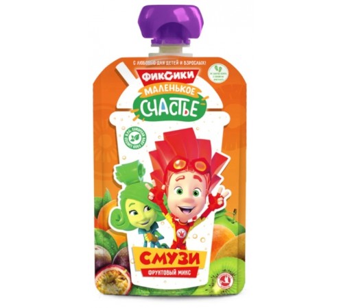 Ingrediente: suc de mere, piure de piure, piure de piersică, suc de fructe (suc de mere, mandarină, ananas, suc de fructe pasionale, piure de piersică, piure de kiwi)
