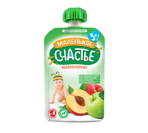 Puree din mere și piersici pentru alimentie pentru copii mici – omogenizat, sterilizat „Маленькое счастье”