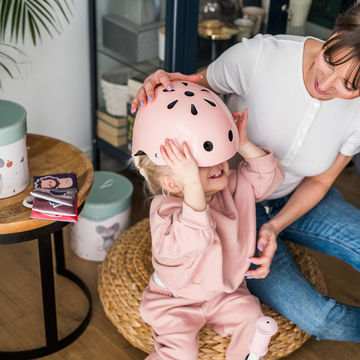 Casca este ușoară, ceea ce oferă copilului confort. MoMi MIMI are un strat ABS și EPS de înaltă calitate care asigură siguranță atunci când mergeți pe bicicletă sau scuter.