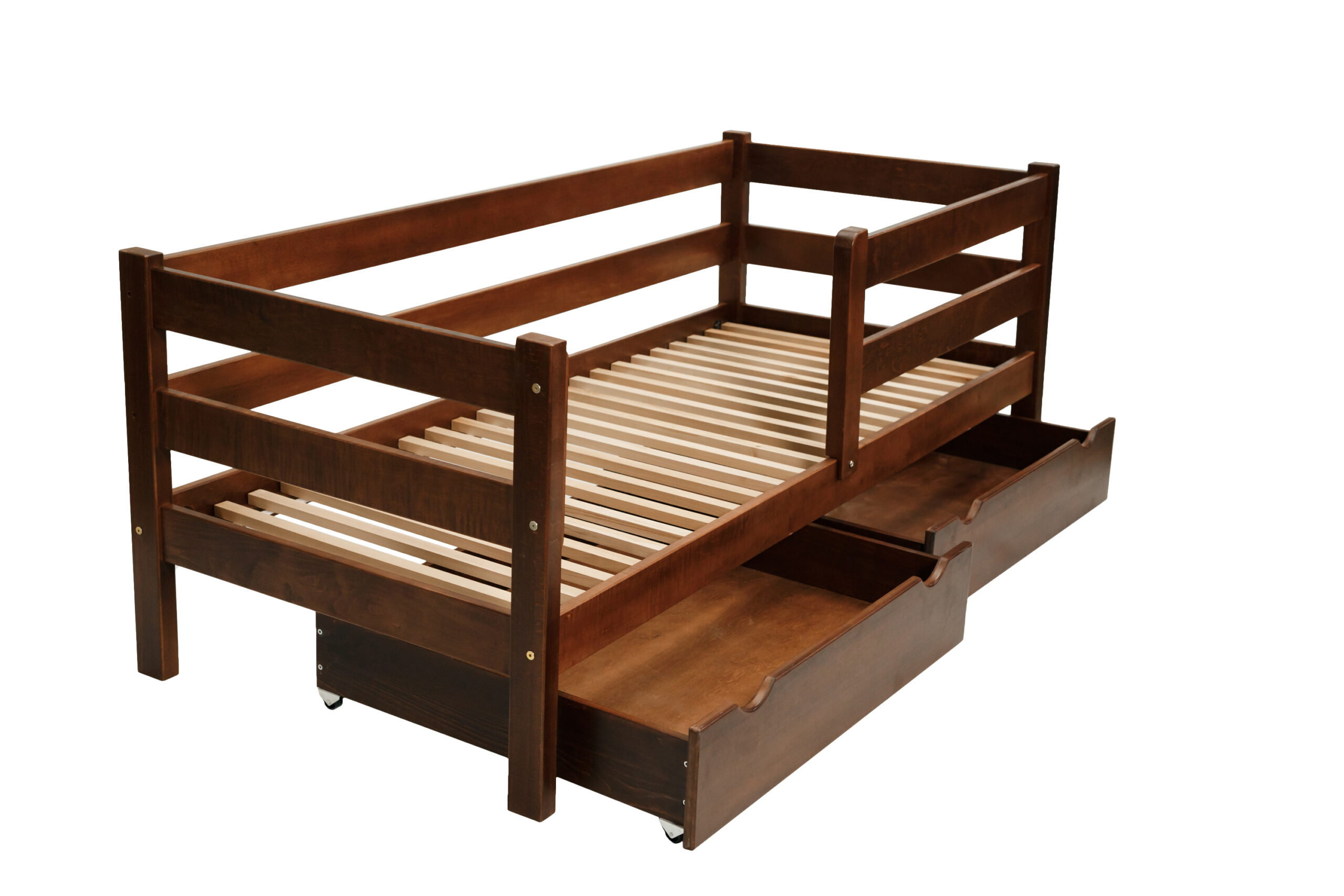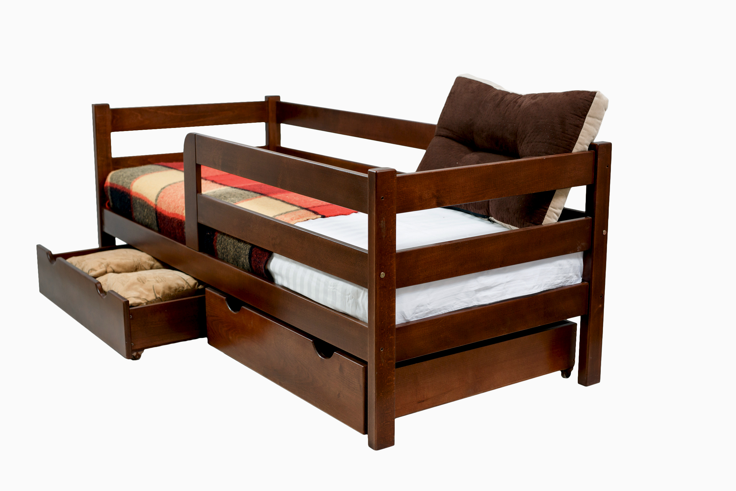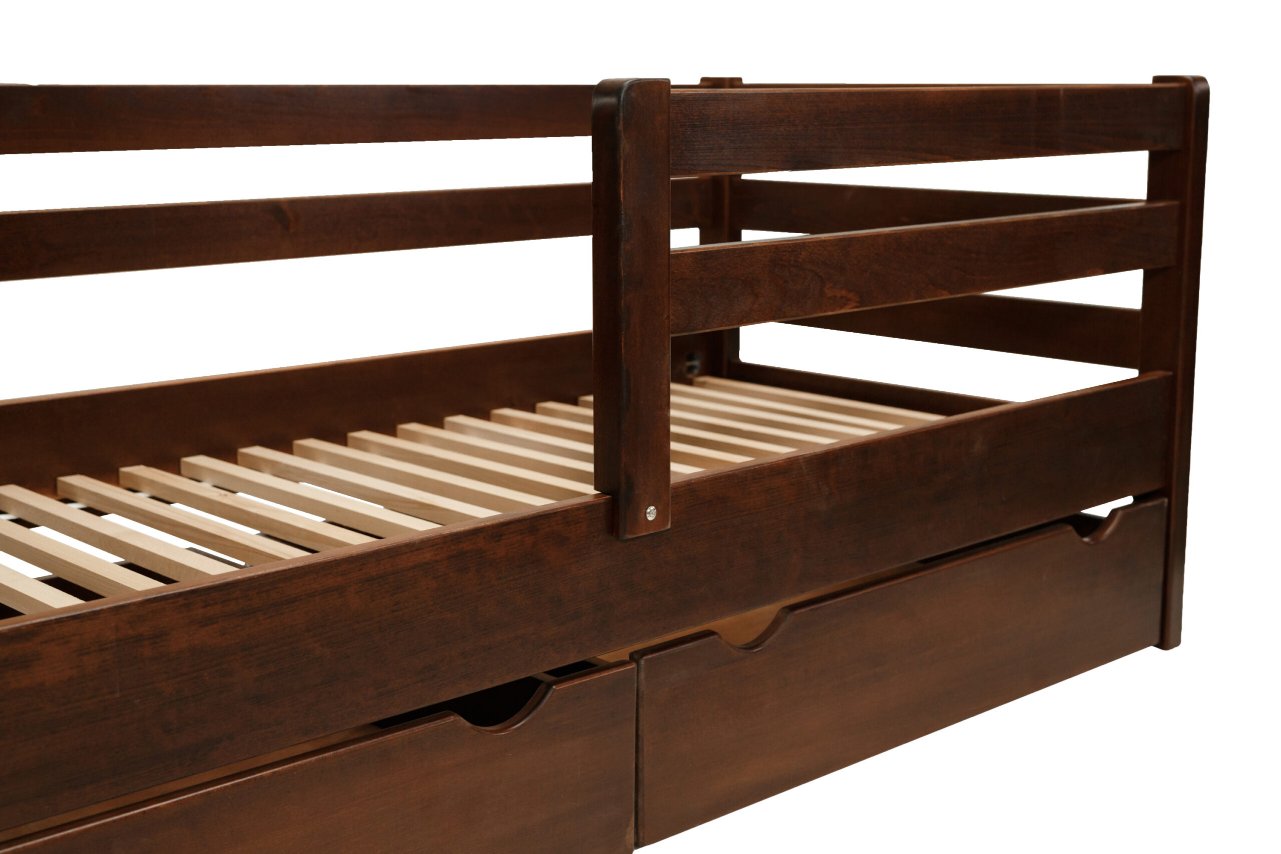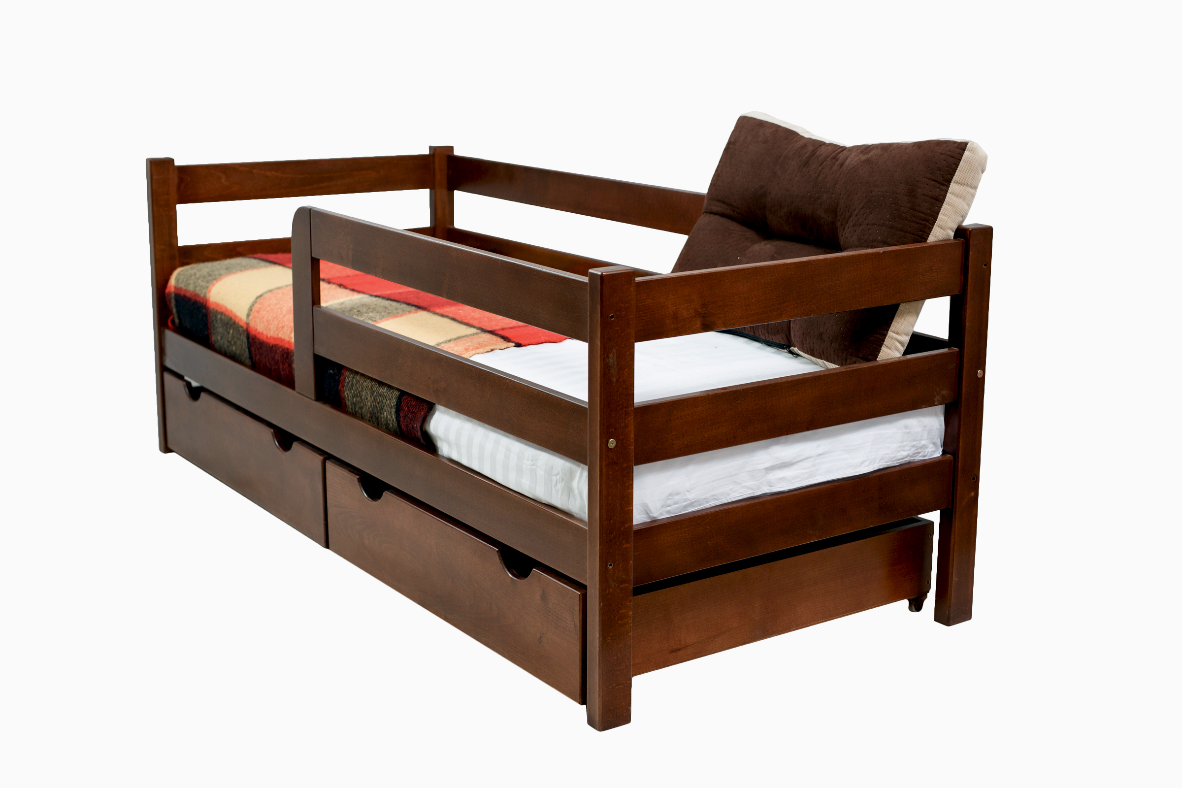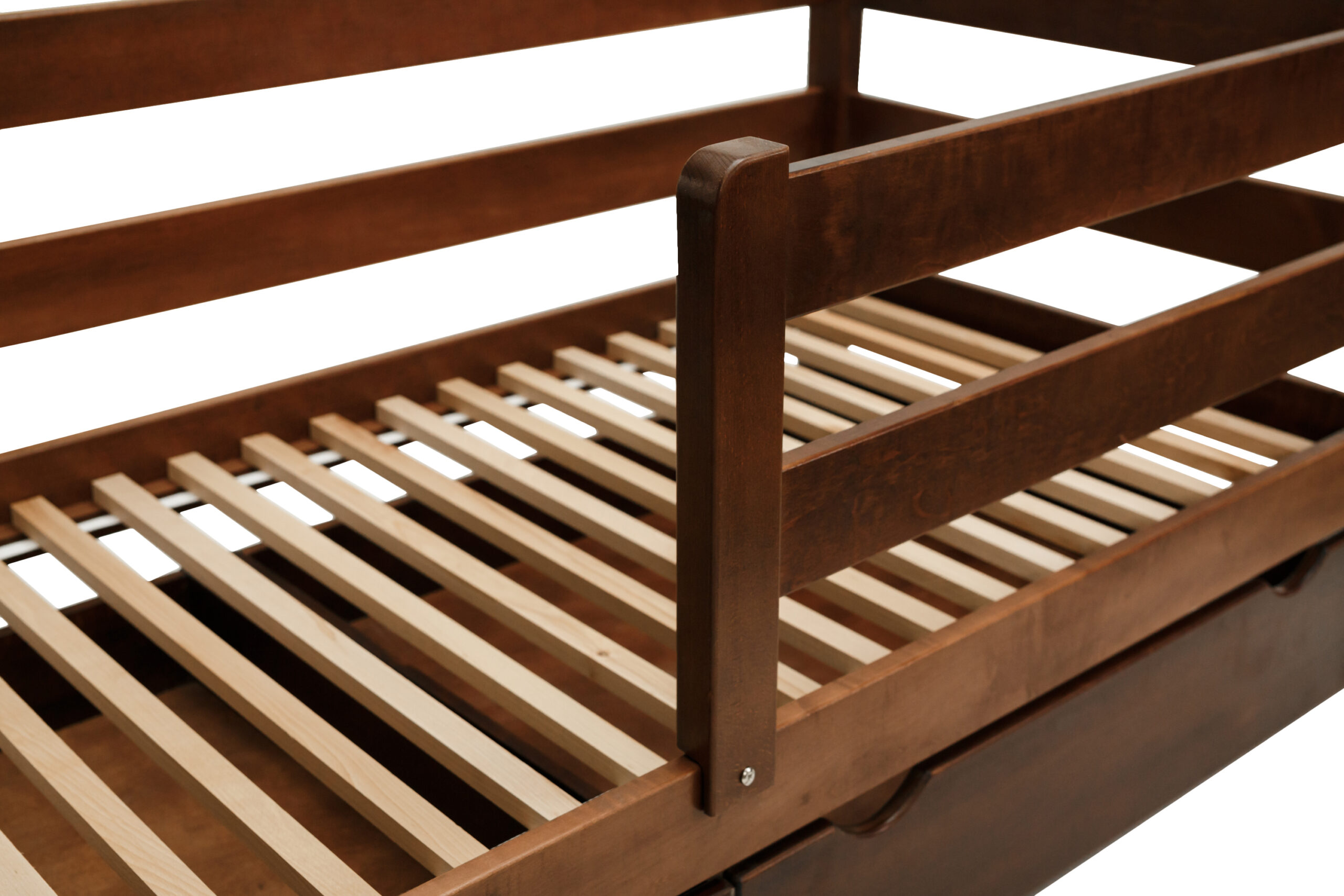 Modelul are deasemenea o latura protectoare pentru siguranta copilului, care, daca se doreste, nu poate fi atașată. Este realizat din lemn masiv de fag, șlefuit cu grijă și acoperit cu vopsea ecologică pe bază de apă.