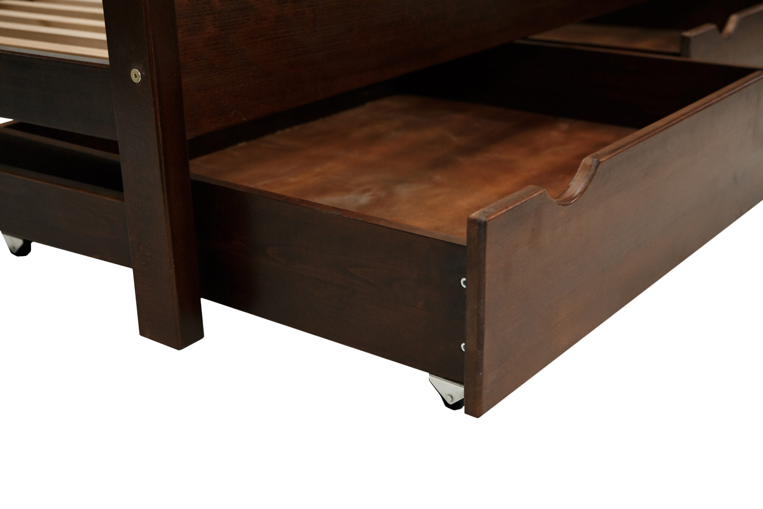 Sub pat sunt două sertare mari, pe roți pentru depozitarea diverselor lucruri, care deasemenea sunt din lemn de fag.
