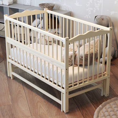 Patuț pentru un nou-născut cu un mecanism de pendul.