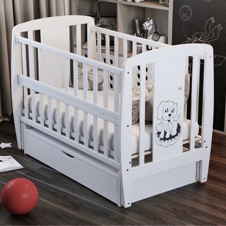 Patuț pentru un nou-născut cu un mecanism de pendul.