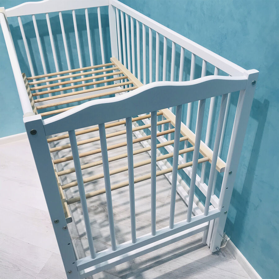 Patuț pentru un nou-născut cu un mecanism de pendul.