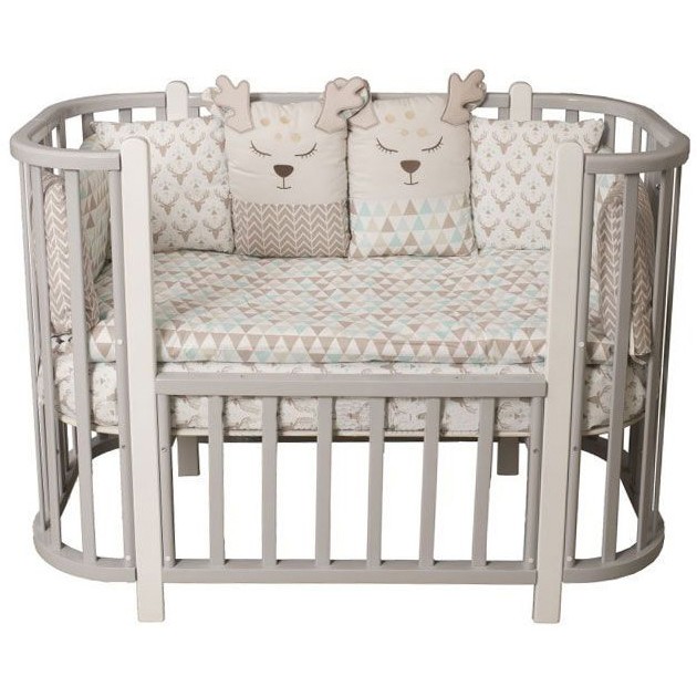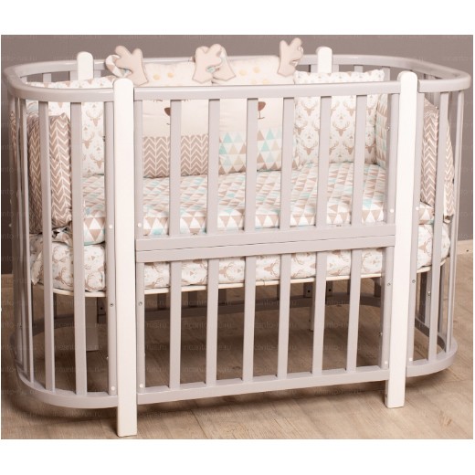 Pătuț cu o formă ovală modernă se va potrivi în orice interior.