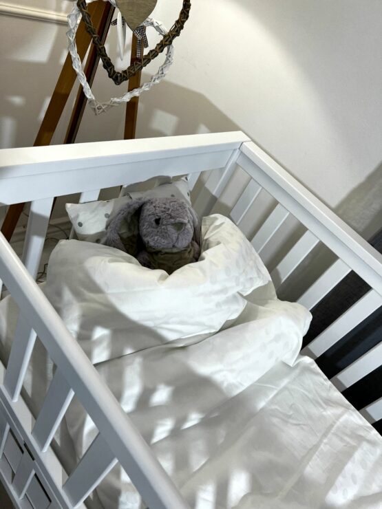Toate detaliile pătuțului sunt lustruite cu grijă;