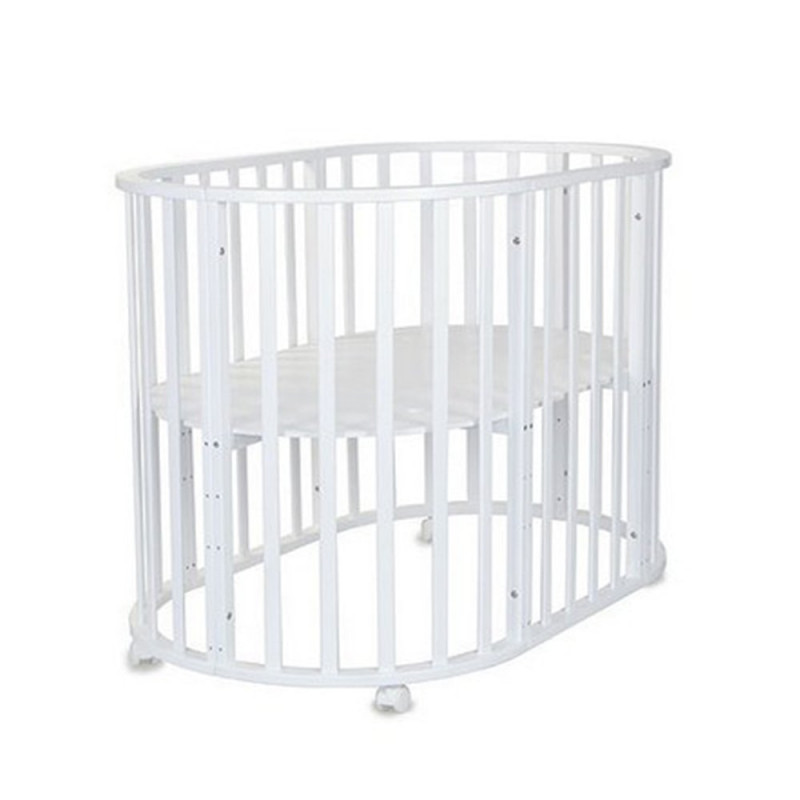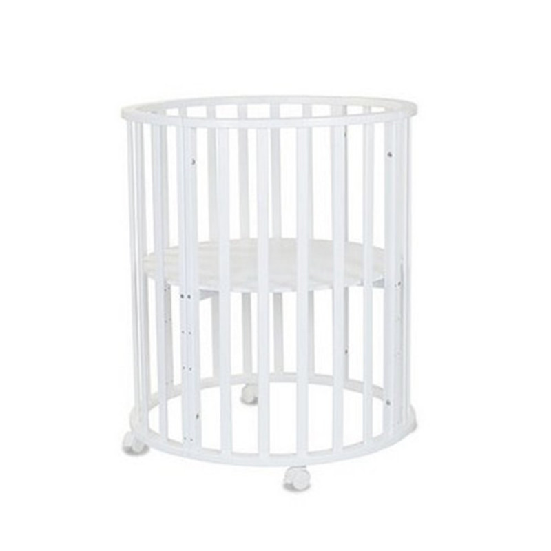 Pătuț rotund / oval de culoare alb, creat din mesteacăn și MDF. Marginile rotungite ale părților nu vor permite lovirea bebelușului. Pătuțul este pe roți pentru o mișcare comfortabilă prin cameră. Mecanismul cu pendul va liniști copilul rapid. În primele luni de viață în pătucul rotund, copilul se simte foarte comfortabil!