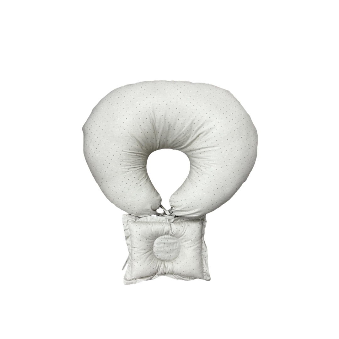 - Forma ergonomică a pernei contribuie la poziționarea corectă a copilului, prevenind tensiunea la nivelul gâtului și spatelui mamei.