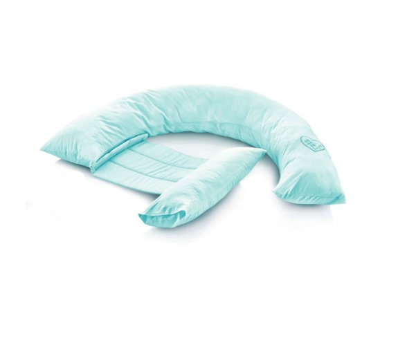Confort din orice pozitie – Pe langa suportul pe care il ofera burticii, soldurilor, coapselor si umerilor atunci cand gravida sta asezata pe o parte, perna ofera si suport lombar excelenta datorita pernei lombare detasabile.