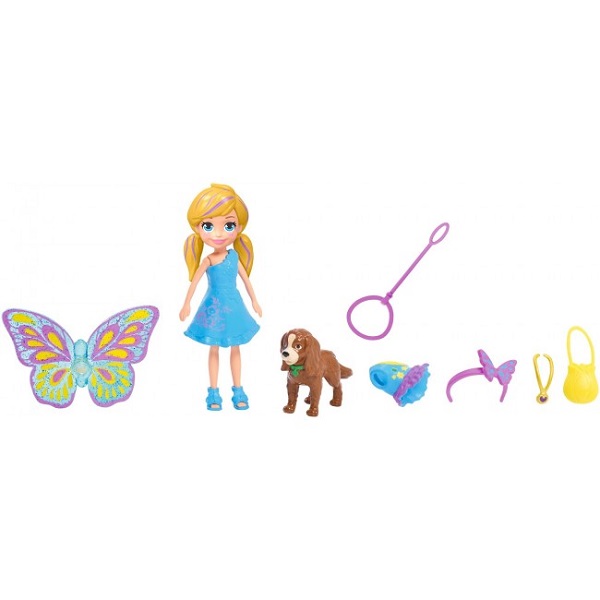Există patru moduri de a-i îmbrăca pe Polly și animalul ei de companie! Cu setul Little Fashionista, copiii pot îmbrăca micuța Polly și păpușa ei în patru costume și pălării diferite! Vrei să fii fluture, sirenă, pirat sau pisicuță? Pentru și mai multă distracție, experimentați și combinați piese de costum pentru a crea noi look-uri distractive! Setul include o păpușă Polly, 4 seturi complete de haine la modă, un cățeluș, 4 seturi de haine pentru un cățeluș, aripi de fluture, o geantă de mână. Culorile și accesoriile pot varia.