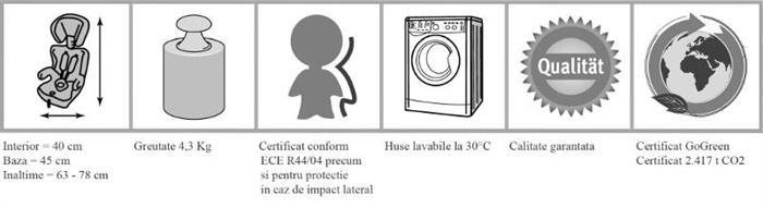 - Scaunele auto BabyGo sunt certificate in concordanta cu standardele impuse prin ECE R44/04 si ofera inclusiv protectie laterala optima.