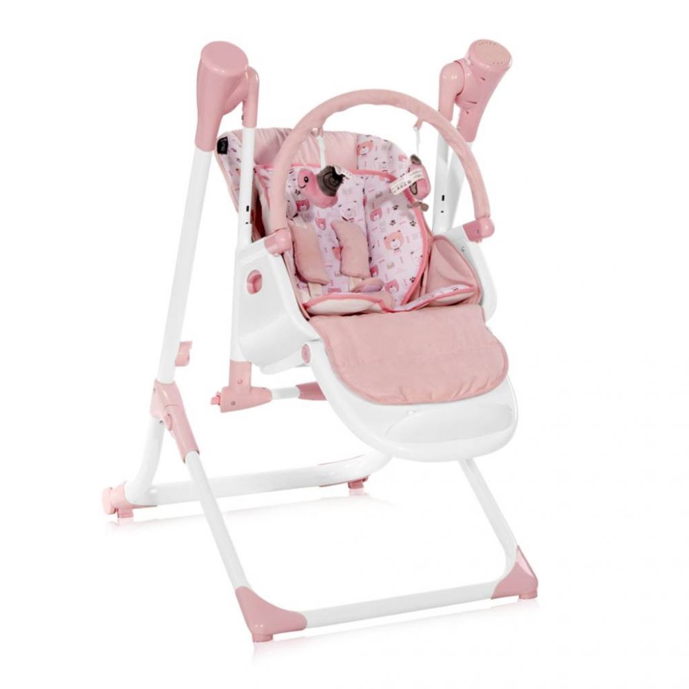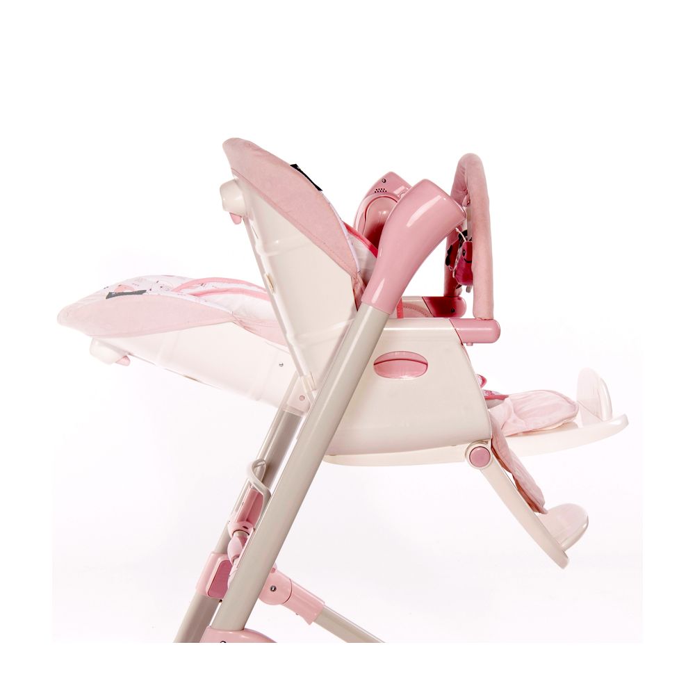 – Spatarul scaunului este reglabil in 4 pozitii diferite de inclinare, atunci cand este folosit ca scaun de masa, si in 2 pozitii diferite de inclinare, atunci cand este folosit ca leagan.